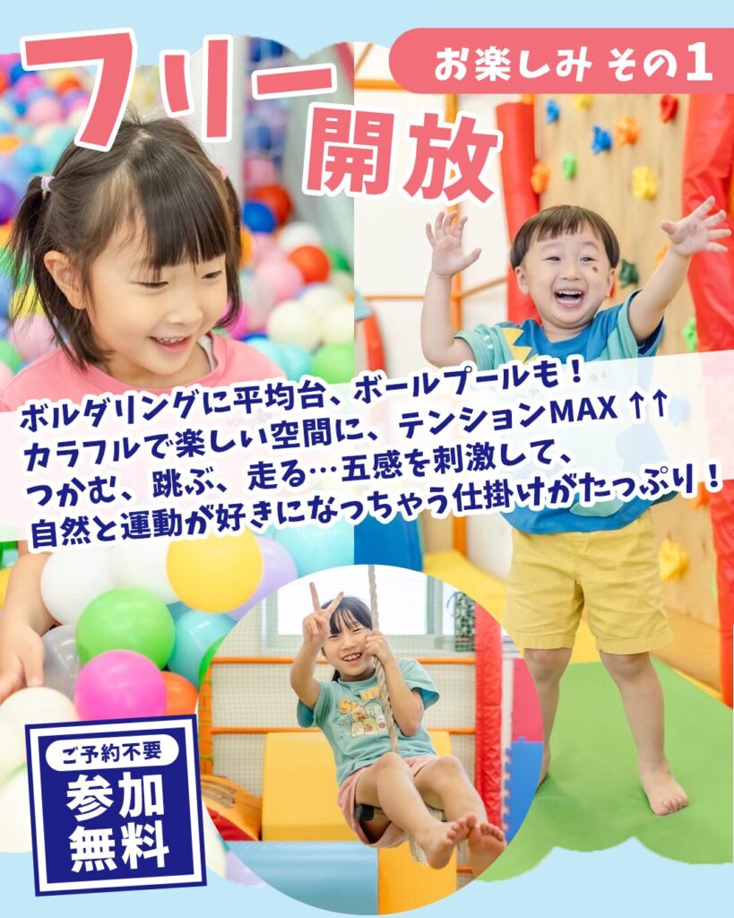 【予約不要】施設内の遊具で自由にあそべる「フリー開放」。期間中は10:00〜19:00まで無料開放中です!